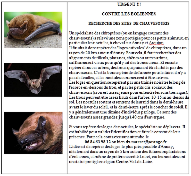 La pollution au CO2 va augmenter de une à dix fois avec l'obligation de mettre en route des centrales à gaz ou à charbon alors que la centrale nucléaire toute proche est apte à nous fournir toute l'énergie électrique désirée sans CO2. | Notre commune rurale héberge des centaines de vaches qui n'ont rien demandé et qui vont être obligées de s'adapter à des objets très pertubateurs de leur environnement comme l'a montré l'intervention de l'agricultrice qui est venue témoigner de son désarroi aux 120 personnes de la réunion d'information que nous avions organisée le 12 novembre à la mairie d'Annay. |